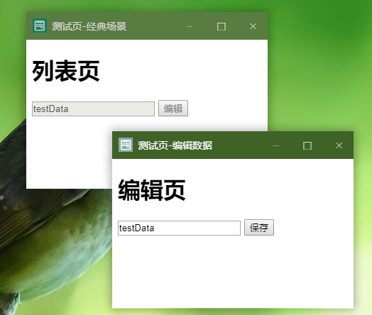 在编辑页提交信息后,可以通过事件信息发送“已提交”的信息给列表页(让列表页更新视图),然后窗体API关闭自身。